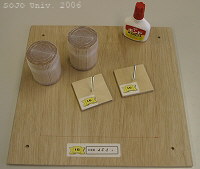 - 参加申込数にあわせて、各参加者に配付する台座、おもり取り付け台の製作を行った。
